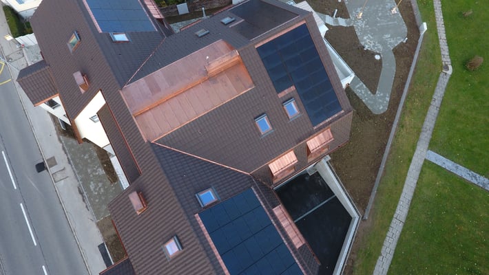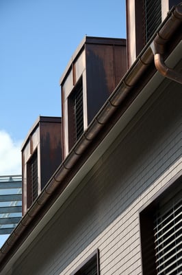 Spenglerarbeiten mit Dachlukarnen und Doppelfalzdach in Kupfer