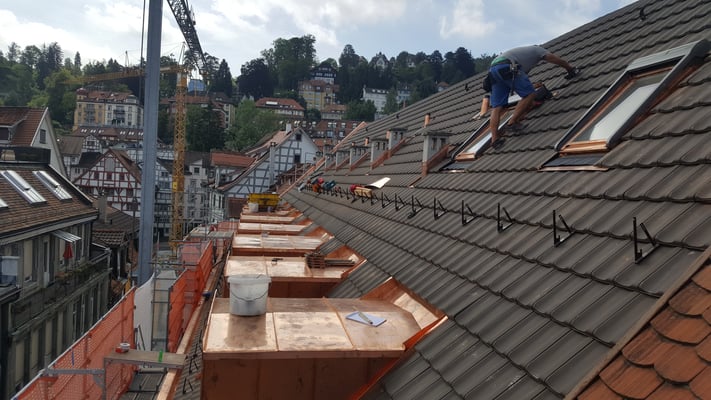 Dachsanierung mit Spenglerarbeiten in Kupfer, Erneuerung Gauben (3. Bild vorher Zustand)